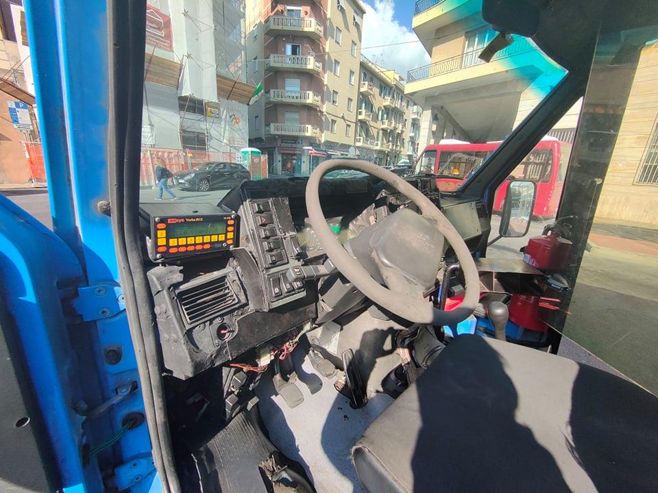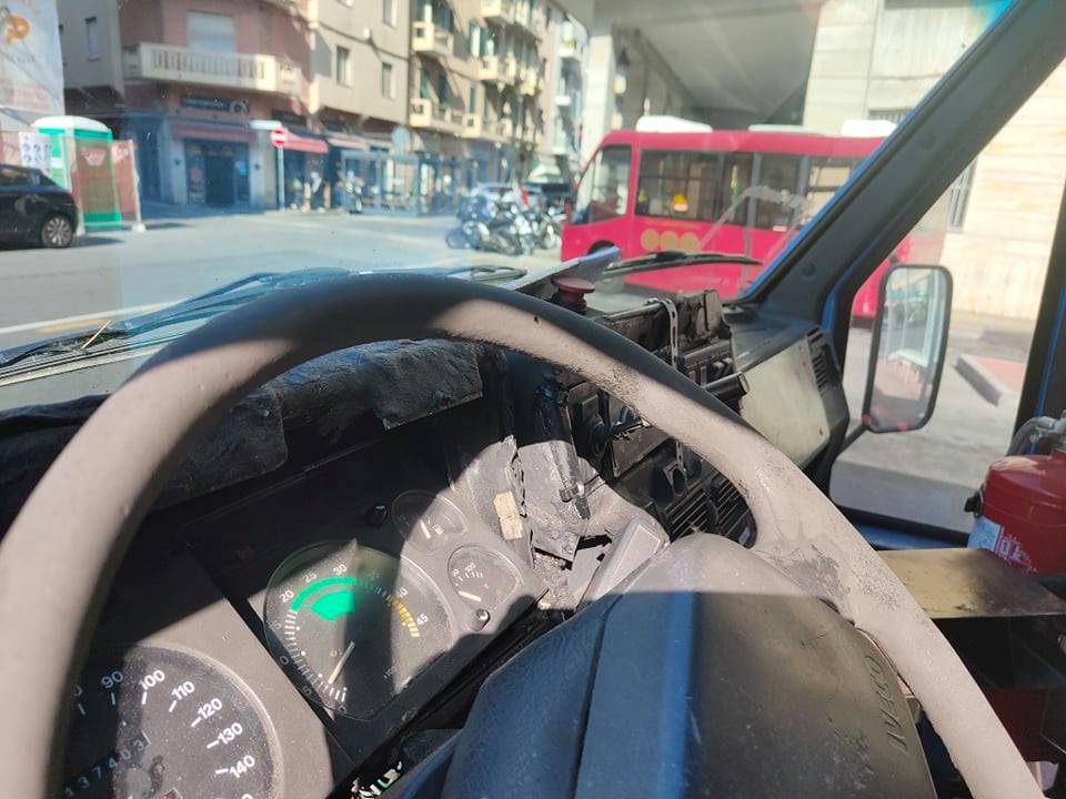 Autobus immatricolati a fine anni ’90, fanalini danneggiati, pneumatici usurati, carrozzerie borlate, riparate alla bell’e meglio, con nastro adesivo, interni ormai vetusti, cavi elettrici scoperti, addirittura quadri tenuti insieme con il mastice. E’ un parco mezzi in pessime condizioni quello della Riviera Trasporti, azienda incaricata della gestione del trasporto pubblico in provincia di Imperia.