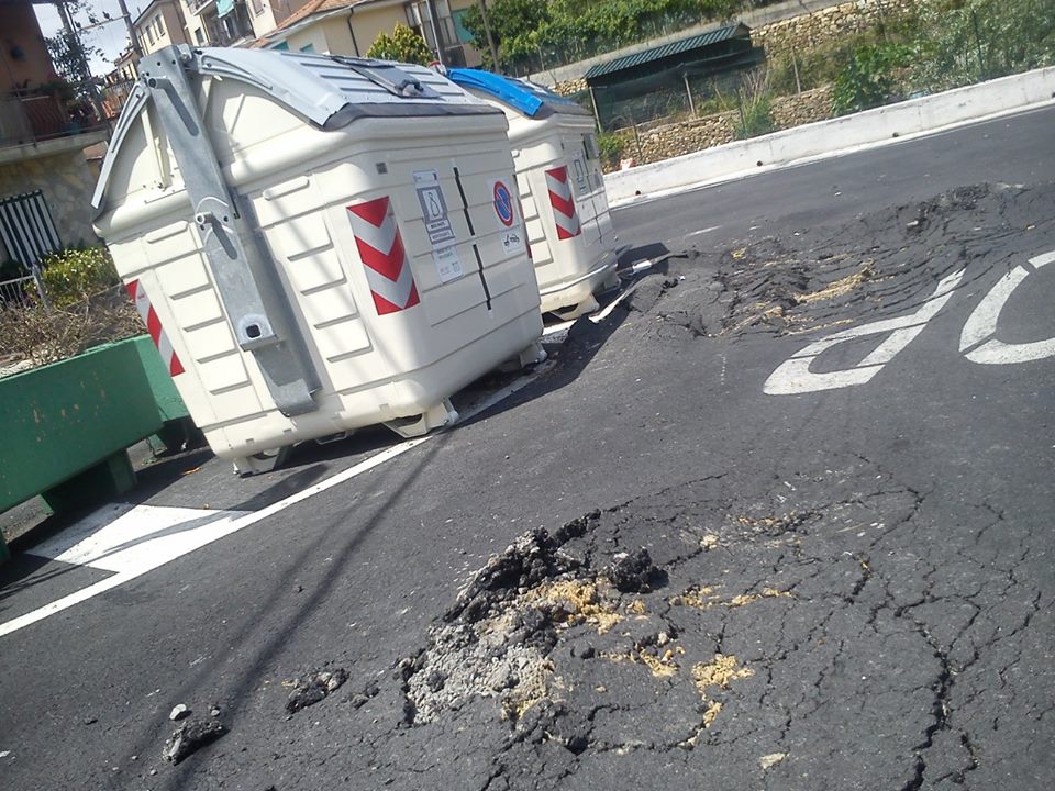 “Questa è la condizione attuale del parcheggio di Borgata Ricci, a Cantalupo, Imperia, che è stato recentemente asfaltato a seguito del passaggio dei pesanti camion della spazzatura, sicuramente una parte di colpa ce l’ha chi ha asfaltato il parcheggio. Il problema è che passando con le autovetture rischiamo di rovinarci la macchina…“.