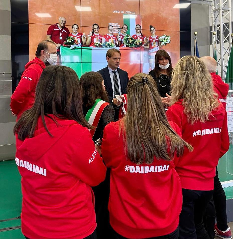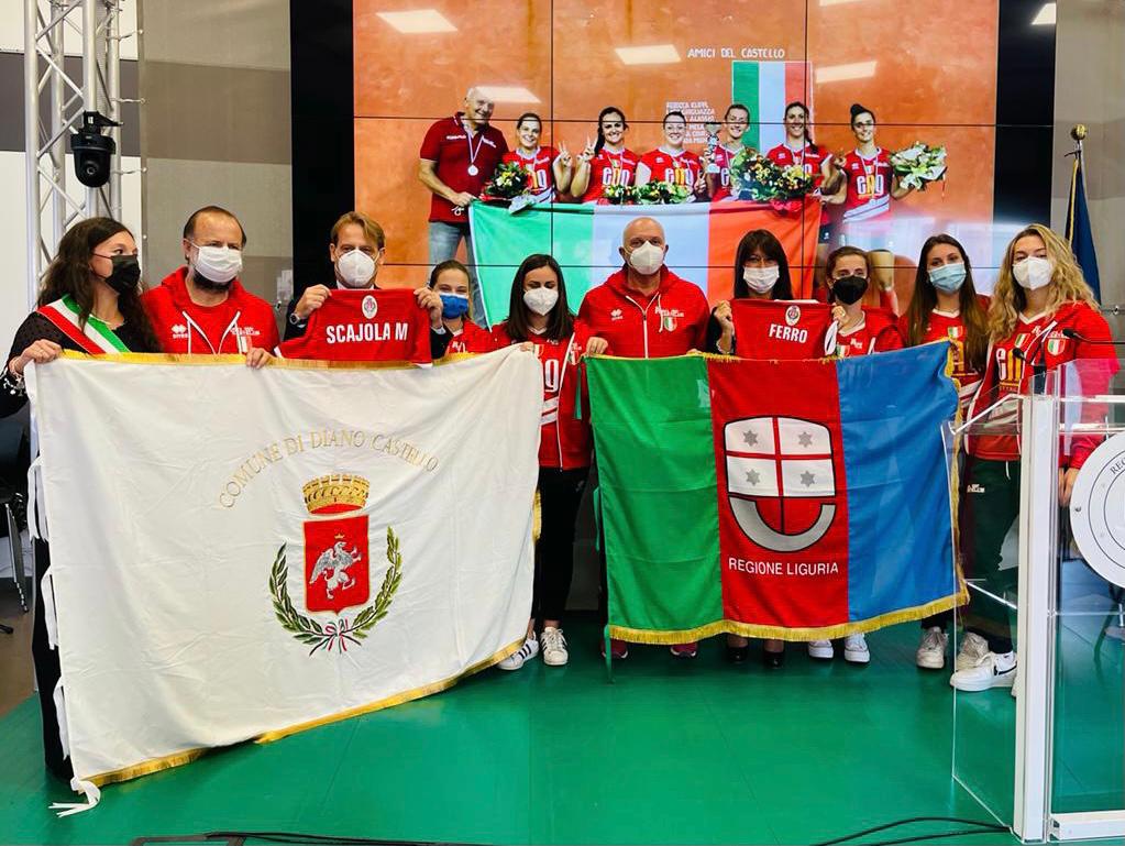 Gli assessori regionali Marco Scajola e Simona Ferro questa mattina in Sala Trasparenza hanno premiato le campionesse italiane di Pallapugno “Amici del Castello”, la squadra imperiese che anche quest’anno si è confermata al vertice della classifica nazionale.