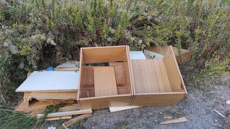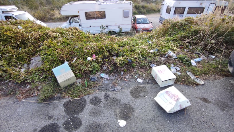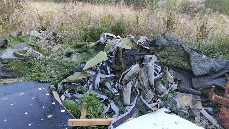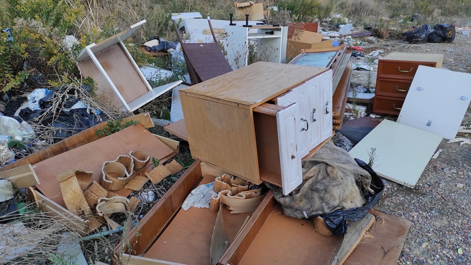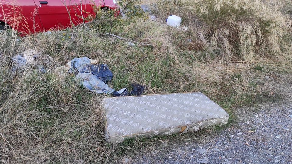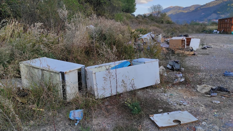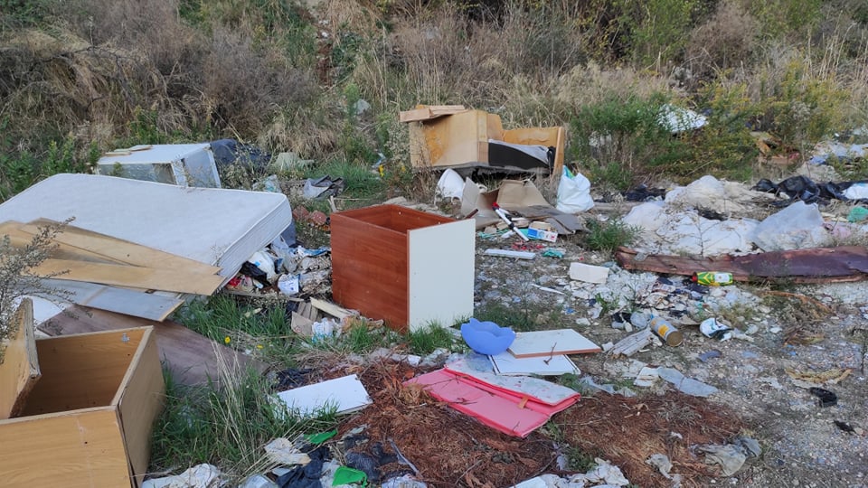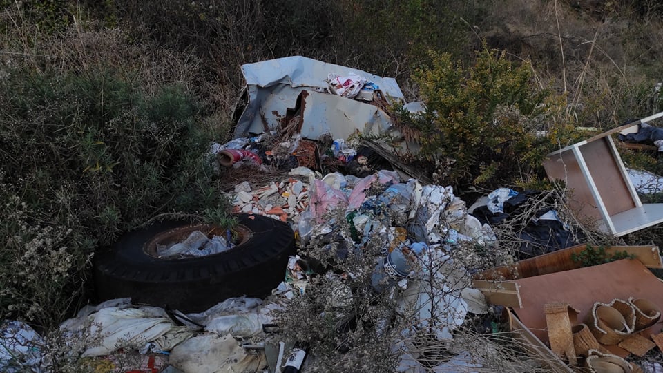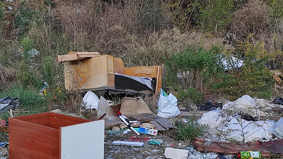 Come si può vedere dalle immagini, in una piazzola a bordo strada, sono ammassati rifiuti di ogni genere: elettrodomestici, mobili in legno, pneumatici, erba sintetica e una quantità indescrivibile di plastica e sacchi di plastica.