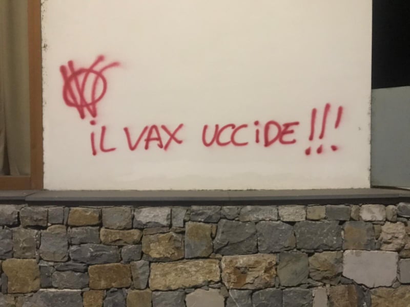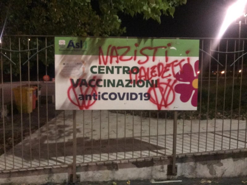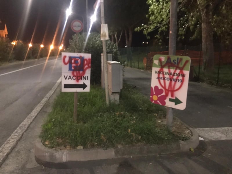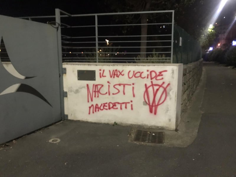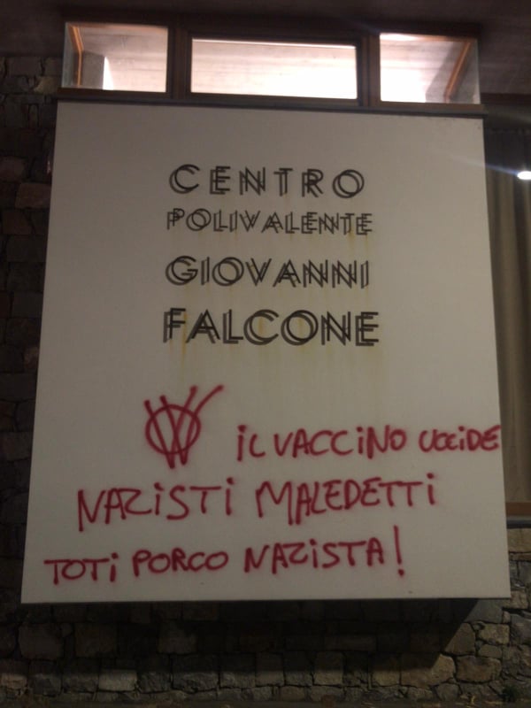 Ignoti, questa notte, hanno imbrattato il Palabigauda di Camporosso, centro vaccinale della Asl1 imperiese. “Il vaccino uccide”, “Toti porco nazista“, “Nazisti maledetti”, queste le scritte che campeggiano all’esterno della struttura, già oggetto in passato di atti vandalici.