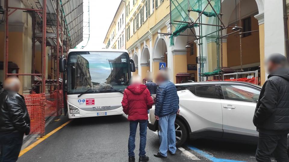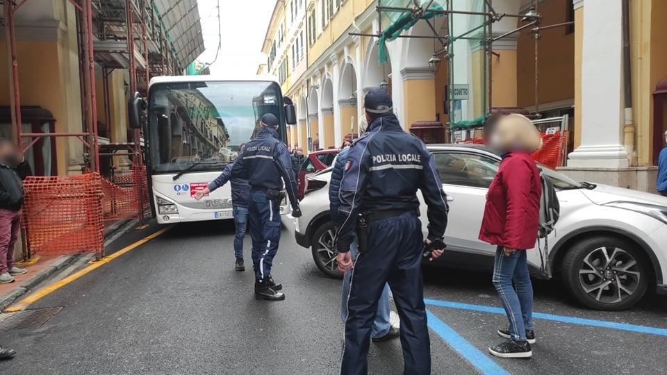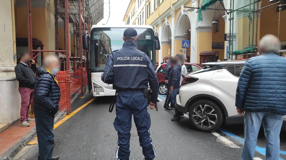 Imperia: ennesimo bus bloccato in via Bonfante. Traffico in tilt, interviene Polizia Locale