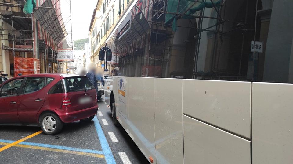 Secondo quanto ricostruito, come per gli altri casi, un’auto, parcheggiata in un posteggio all’altezza del cantiere presente da alcuni mesi nella via, avrebbe invaso parzialmente la carreggiata, impedendo il passaggio di un bus di linea della Riviera Trasporti, con la conseguente formazione di una lunga coda.