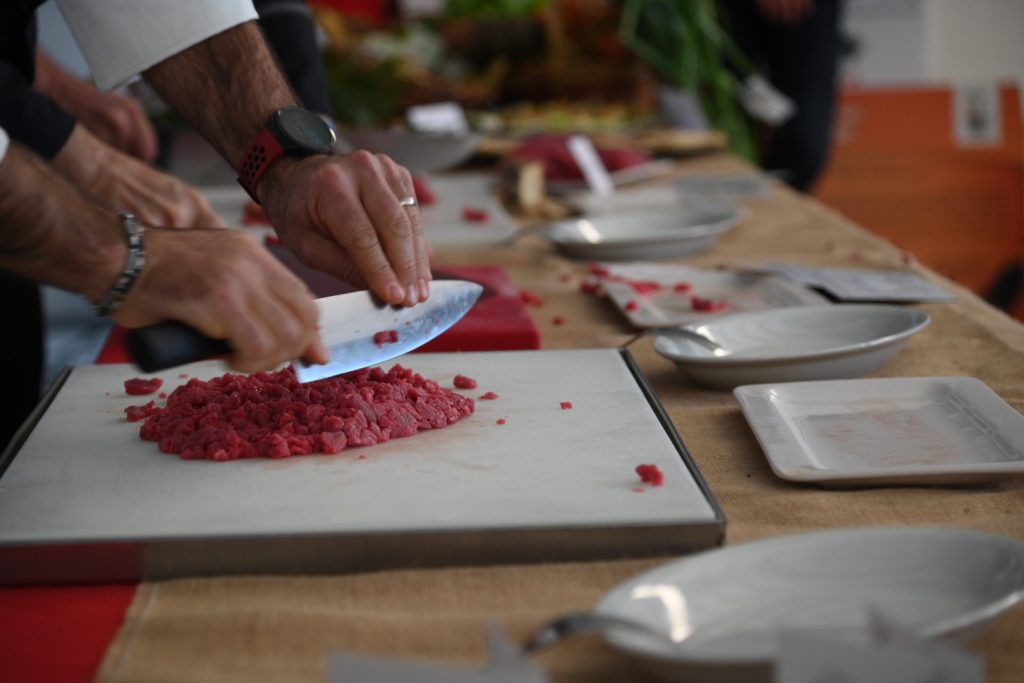 Principali protagonisti della giornata sono stati quattro prestigiosi chef. I tre carruccesi (Daniele Lubatti dell’Osteria del Borgo, Marco Cravero e Carlo Bella del Vascello d’oro con Fabrizio Peirotti del Moderno) si sono esibiti con la famosa battuta, cedendo la scena alla vera regina dell’evento, la carne rossa di razza piemontese, in un’appassionante challenge a colpi di coltello.