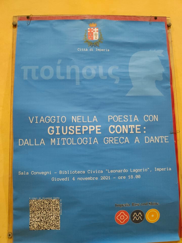 Grande partecipazione in biblioteca a Imperia, per l’incontro con lo scrittore Giuseppe Conte. L’appuntamento, che rientra all’interno della rassegna “Aspettando il Centenario“, si intitola “Viaggio nella poesia: dalla mitologia greca a Dante”.