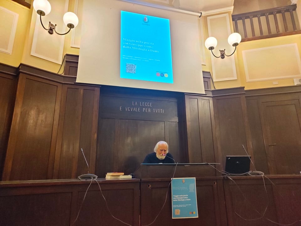 “Un convegno con un poeta illustre, concittadino, che abbiamo l’onore di ospitare. Giuseppe Conte ci porterà in un viaggio dalla mitologia greca, sino ad arrivare a Dante.