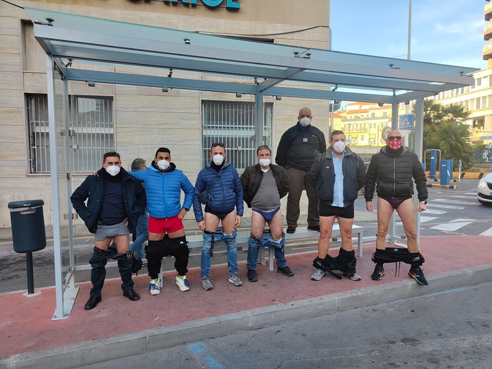 In mutande, alla pensilina degli autobus di piazza Nannolo Piana, per protestare contro il mancato pagamento degli stipendi. Succede a Imperia, protagonisti alcuni lavoratori della Riviera Trasporti, l’azienda incaricata della gestione del servizio di trasporto pubblico in provincia.