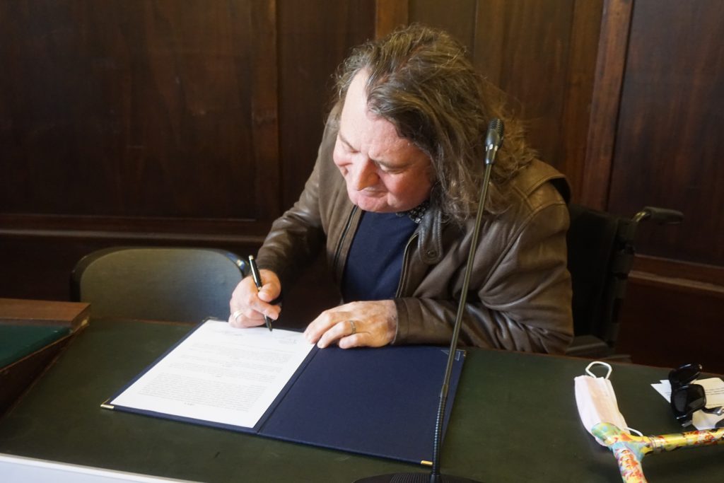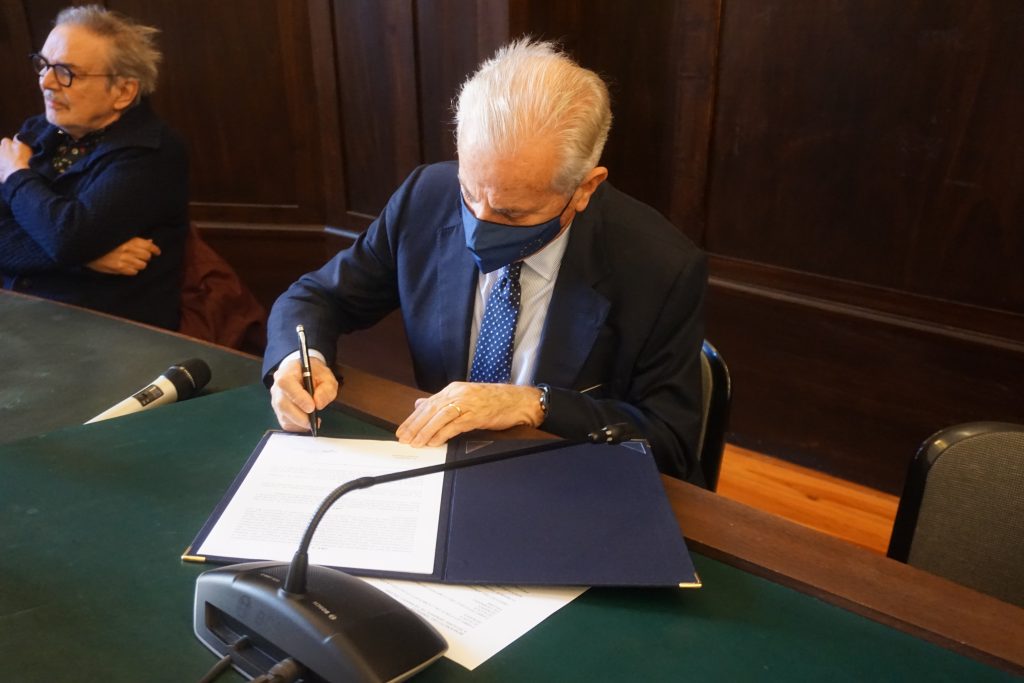 È stata presentata oggi, sabato 6 novembre, la Collezione Musicale Senardi, donata alla città di Imperia dal produttore discografico e direttore artistico imperiese Stefano Senardi. Presenti per la firma di ufficializzazione, in quanto garanti della collezione, insieme al Sindaco Claudio Scajola e l’assessore Marcella Roggero, Mauro Pagani e Luca De Gennaro, due grandi personalità del panorama musicale italiano.