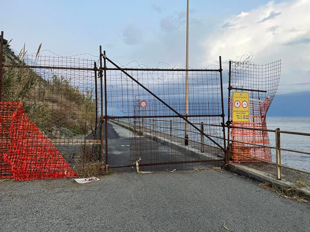 Come stabilito dal Sindaco Cristiano Za Garibaldi, dallo scorso 31 ottobre 2021, giorno in cui è scaduta l’ordinanza di apertura emessa dall’ex primo cittadino Giacomo Chiappori, l’Incompiuta è chiusa sul versante dianese e lo sarà fino a data da destinarsi, ovvero fino al termine dei lavori di ricostruzione del muraglione gravemente danneggiato dagli ultimi eventi alluvionali.