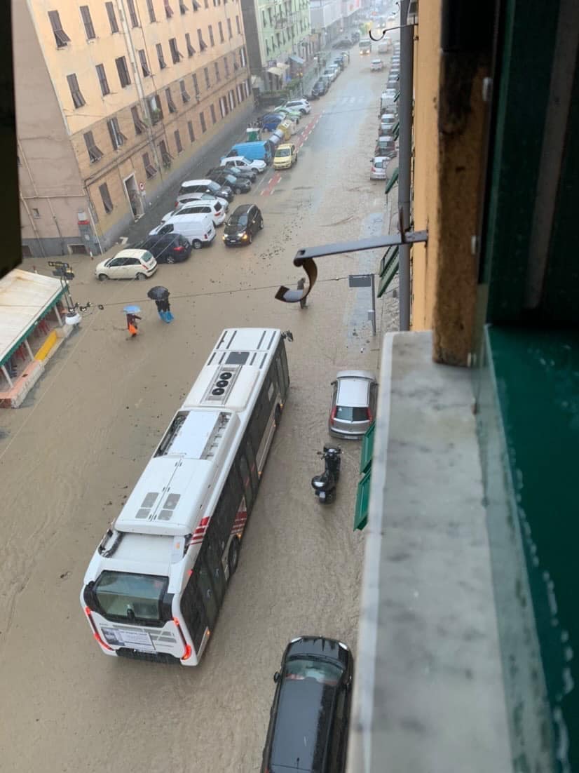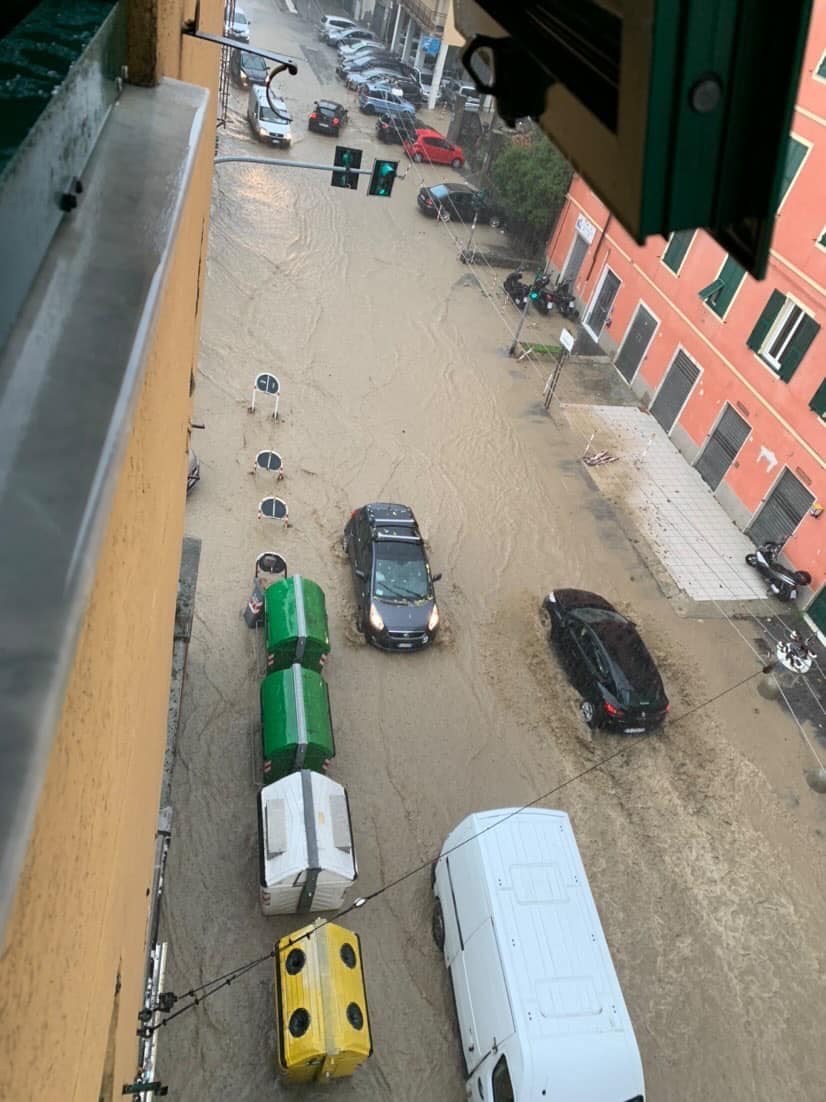 La pioggia intensa caduta a partire dalla tarda mattinata di oggi, fino al pomeriggio, sta causando allagamenti e disagi a Genova. Particolarmente colpite la Valbisagno, la Valpolcevera, ma anche alcune zone del centro cittadino, dove le strade sono state invase da acqua e fango.