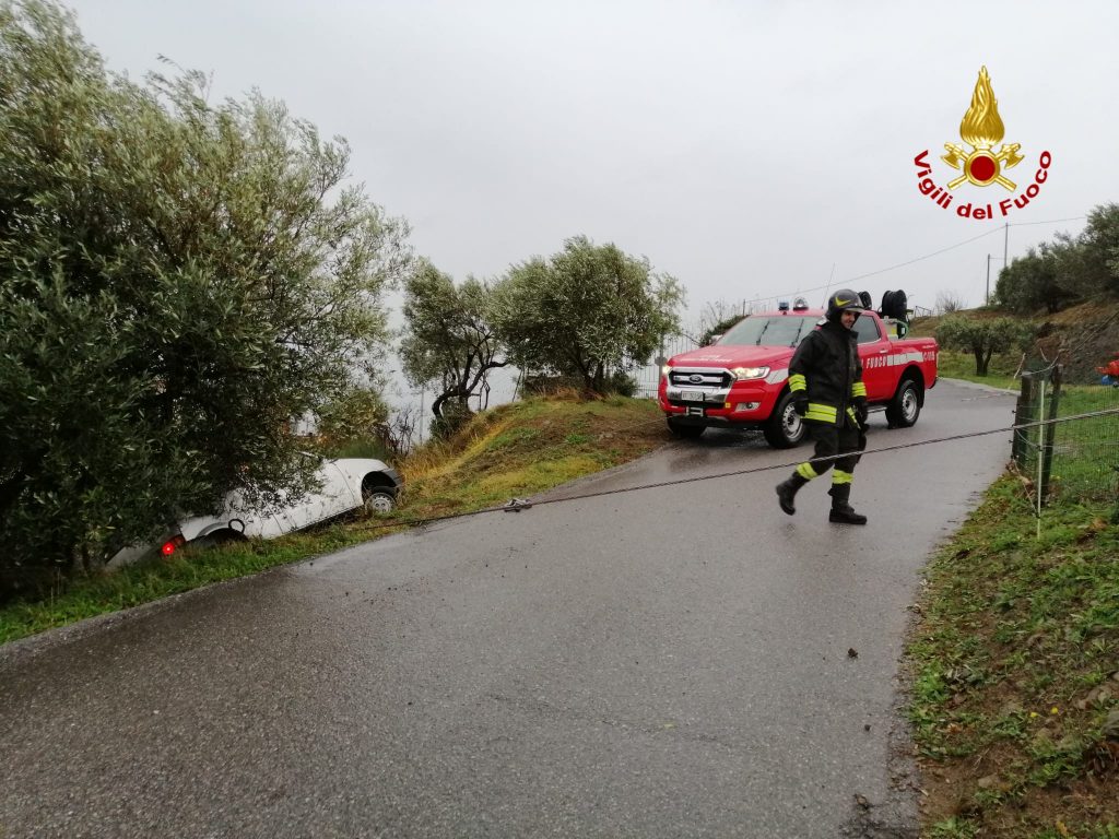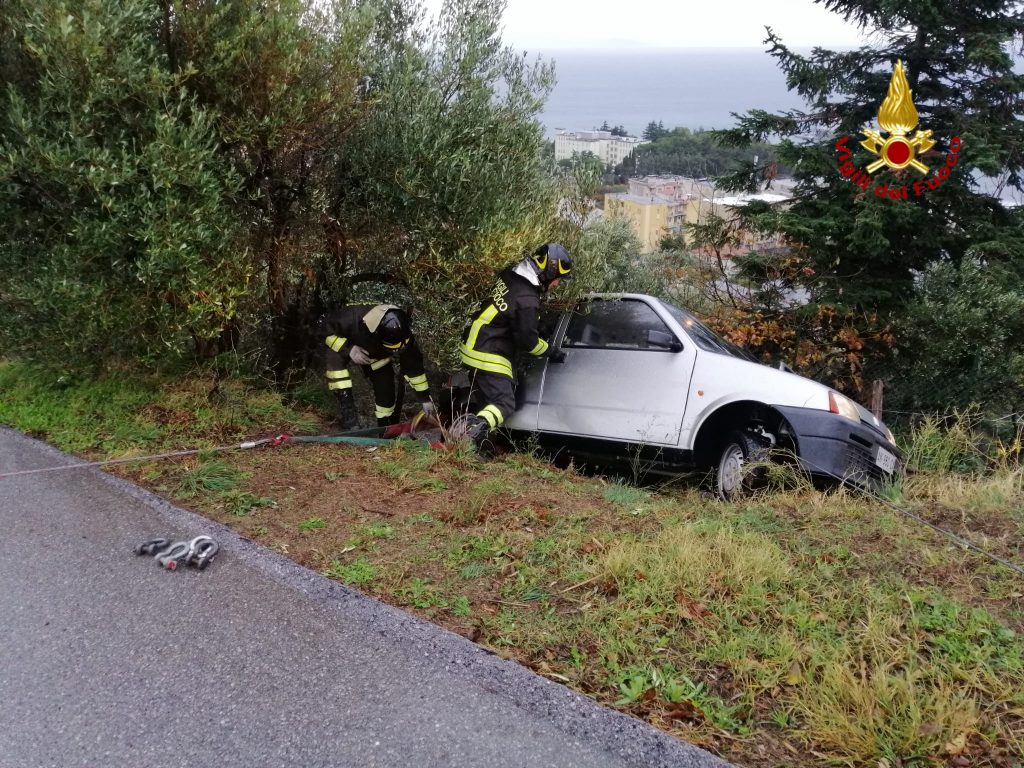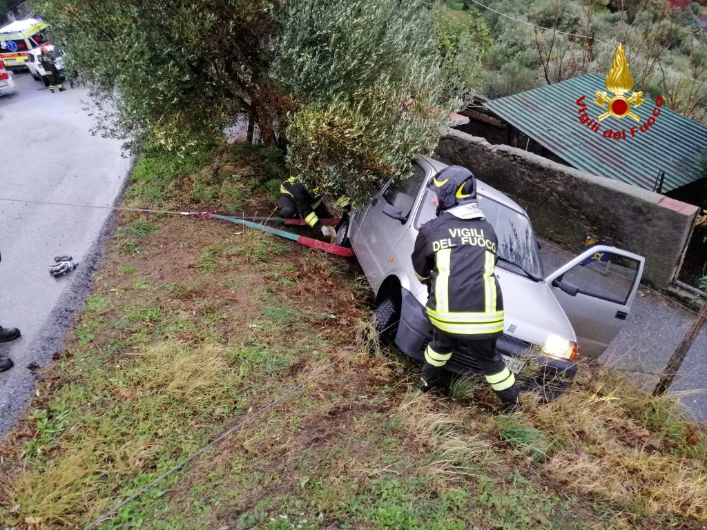 Resta incastrato sotto un’auto, dopo essere finito fuori strada. Intervengono i Vigili del Fuoco. È successo questa mattina in via Ranco, a Savona.