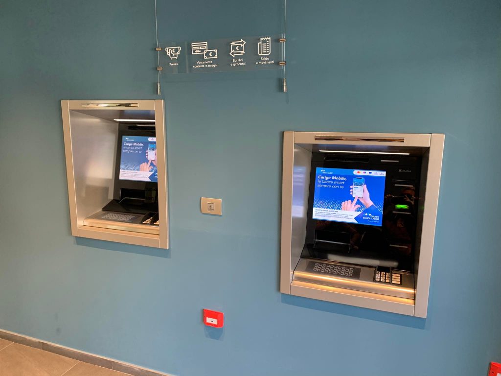 Oltre a disporre di un’Area Self Service dotata di macchine ATM recycler di ultima generazione con transazionalità evoluta, offrono agli utenti la possibilità di accedere tramite carta bancomat a una macchina interna cash self advance per effettuare anche operazioni di pagamento in contanti.