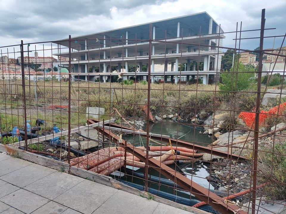 Dall’acqua, torbita, tra tubature, cavi e rifuti, ribolle uno scarico. Un’altra situazione, che va ad aggiungersi ad altre già note, quali il depuratore, il Torrente Impero e Borgo Foce, oggetto di svariate segnalazioni e non degna di una città che spunta sullo sviluppo turistico.