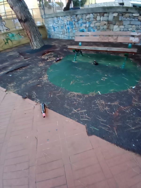 Nei giorni scorsi, infatti, sono stati trovate i cocci di diverse bottiglie di vetro sparpagliati su tutta la pavimentazione dei giochi per bambini dei giardini accanto alla scuola. Il mattino dopo l’area è stata ripulita dalla De Vizia, ma solo pochi giorno dopo, sabato sera, sono comparse altre bottiglie abbandonate.