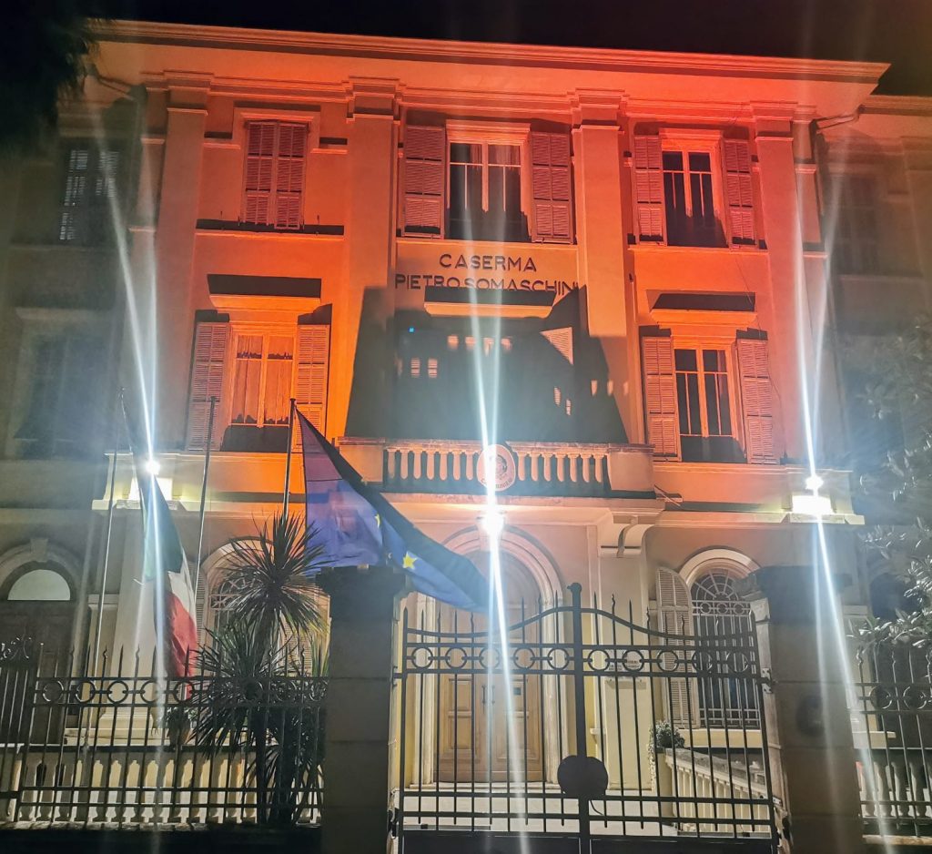 Imperia: giornata contro la violenza sulle Donne, la Caserma dei Carabinieri si illumina di arancione