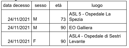 - Non riconducibili alla residenza in Liguria: 2