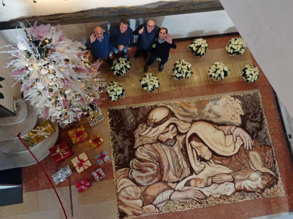 È visitabile nell’atrio del Palazzo Comunale di Imperia, il presepe realizzato dalla Compagnia di Via Carducci. Si tratta di una Natività che, sfruttando la tecnica utilizzata per la storica Infiorata, riproduce un quadro attraverso l’utilizzo di diversi materiali: farina, polenta, bratta del caffè, segatura colorata e fiori secchi macinati. Accanto all’opera è presente un albero di Natale, realizzato dal fiorista e allestitore Sergio Alossi con il suo staff, sotto il quale sono presenti 11 pacchi dono, per richiamare gli undici ex Comuni che hanno formato la Città di Imperia.