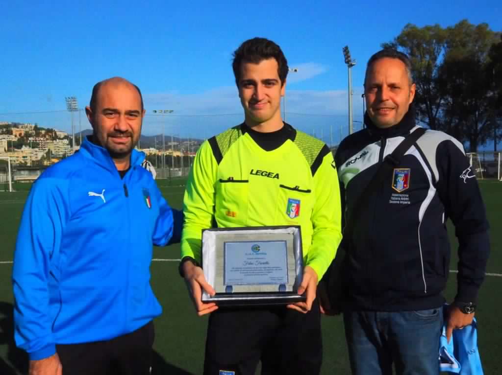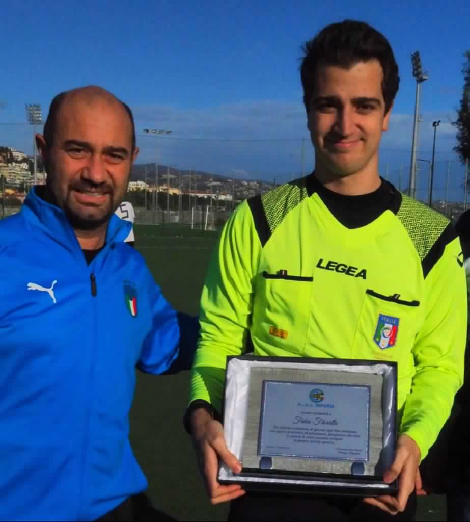 Per fortuna, Fioriello si è ristabilito velocemente ed è stato designato per dirigere il derby ligure disputatosi a Pian di Poma, a cui è accorso anche il designatore della sez. imperiese dell’AIA, Luigi Rambaldi che ha premiato l’arbitro con una targa.