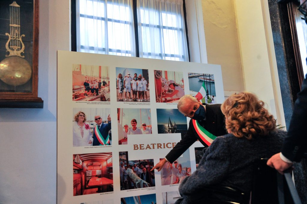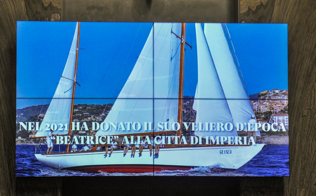 Prima della cerimonia, nell’atrio della Sala consigliare di Palazzo civico, il sindaco Claudio Scajola ha scoperto un quadro che contiene le fotografie del recupero del veliero “Beatrice”, donato alla Città di Imperia da Diana Bracco e destinato alla formazione degli alunni dell’Istituto Nautico.