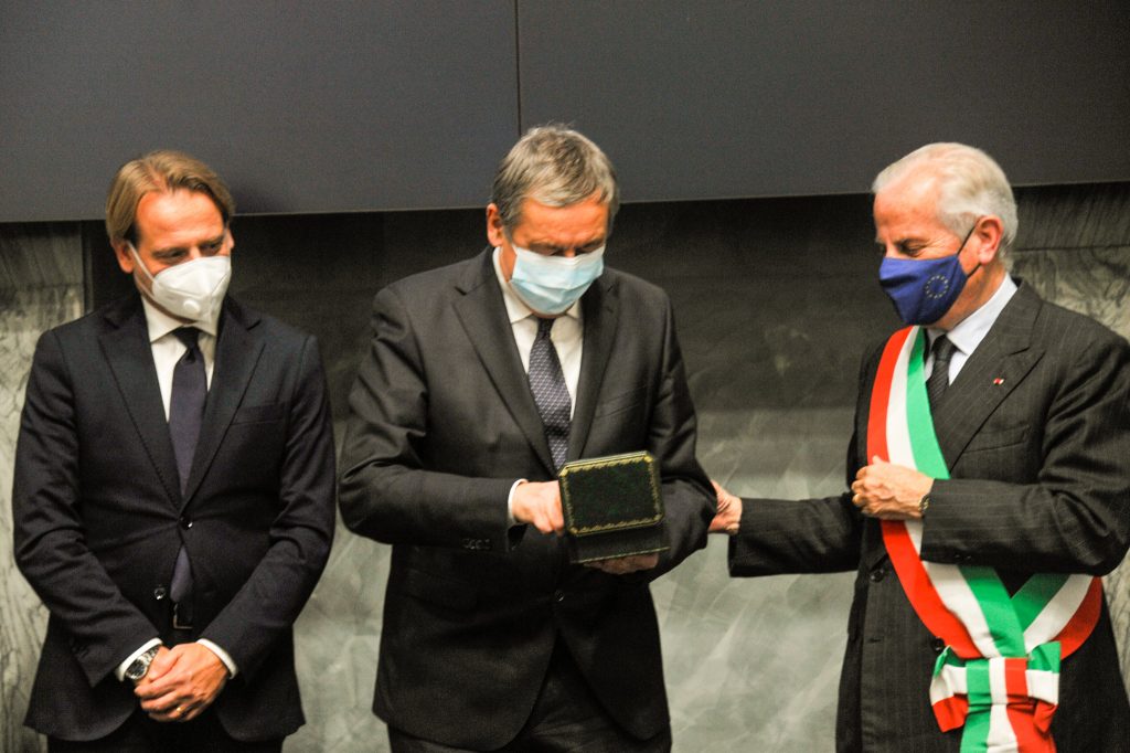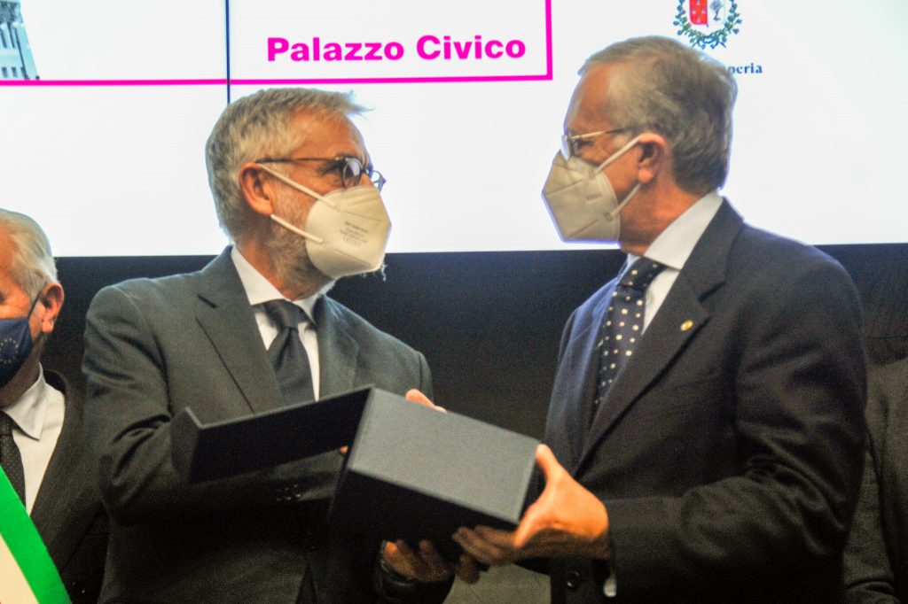 Sottolinea Francesco Profumo: “Sono molto onorato di aver ricevuto questo premio e sono molto grato alla città e al sindaco. Certamente in una fase così complessa per il nostro Paese, nella quale stiamo uscendo da una pandemia, ha un significa molto forte un evento come questo, in presenza e ha un significato ancora più forte per la Compagnia di San Paolo, che presiedo e che ha da sempre avuto una particolare attenzione al bene comune. Nel corso dei secoli, la Compagnia ha avuto la necessità purtroppo di intervenire in situazioni pandemiche, già dal 1.600. In questo caso, gli interventi sono stati relativi alla socialità delle persone prima e poi quelli successivi per l’arte e la cultura, per tornare alla normalità. In questo senso, la Compagnia di San Paolo ha pensato che un intervento su Villa Grock fosse un intervento che consentisse di creare delle migliori condizioni per i cittadini di Imperia sul tema dell’attrazione culturale. Sono molto contento, perché questa mattina sono stato con il sindaco e l’assessore alla Cultura a verificare questa prima parte dell’intervento sul recupero della fontana e naturalmente mi auguro che nel prossimo futuro potremo proseguire su questo progetto, in modo che possa diventare un riferimento per la città di Imperia e possa consentire soprattutto alla città di diventare ancora più attraente”.