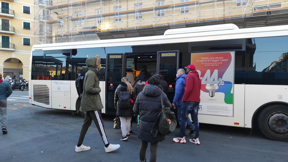 Zero controlli e un senso di smarrimento tra lavoratori e utenti. Questa la situazione questa mattina al capolinea degli autobus di piazza Nanollo Pianna a Imperia, nella giornata in cui entra in vigore il green pass sui mezzi di trasporto pubblico, per le persone sopra i 12 anni.
