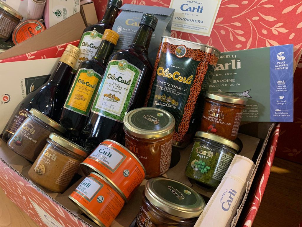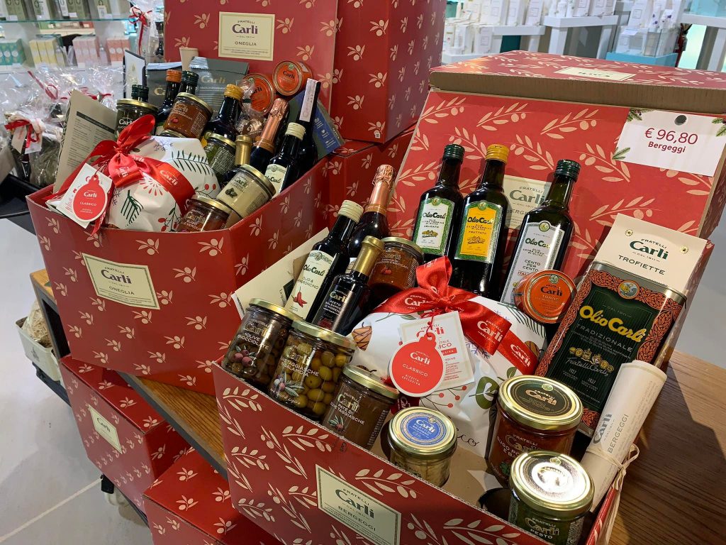 Si può scegliere non solo il celebre Olio Carli e l’ineguagliabile e unico sapore del Dolci di Natale o del Pandolce alla Genovese, ma anche le conserve alimentari della tradizione ligure e mediterranea, insieme a tutti quei prodotti di gastronomia che hanno nell’olio di oliva l’elemento alla base della loro bontà. Tonno, verdure sott’olio, olive, peperoncini ripieni, pesto tradizionale fresco, sughi pronti e salsa di noci. E ancora vini, aceti e dolci in cui il burro è stato sostituito dall’olio, creme di frutta e mieli e la squisita crema nocciole e cacao.