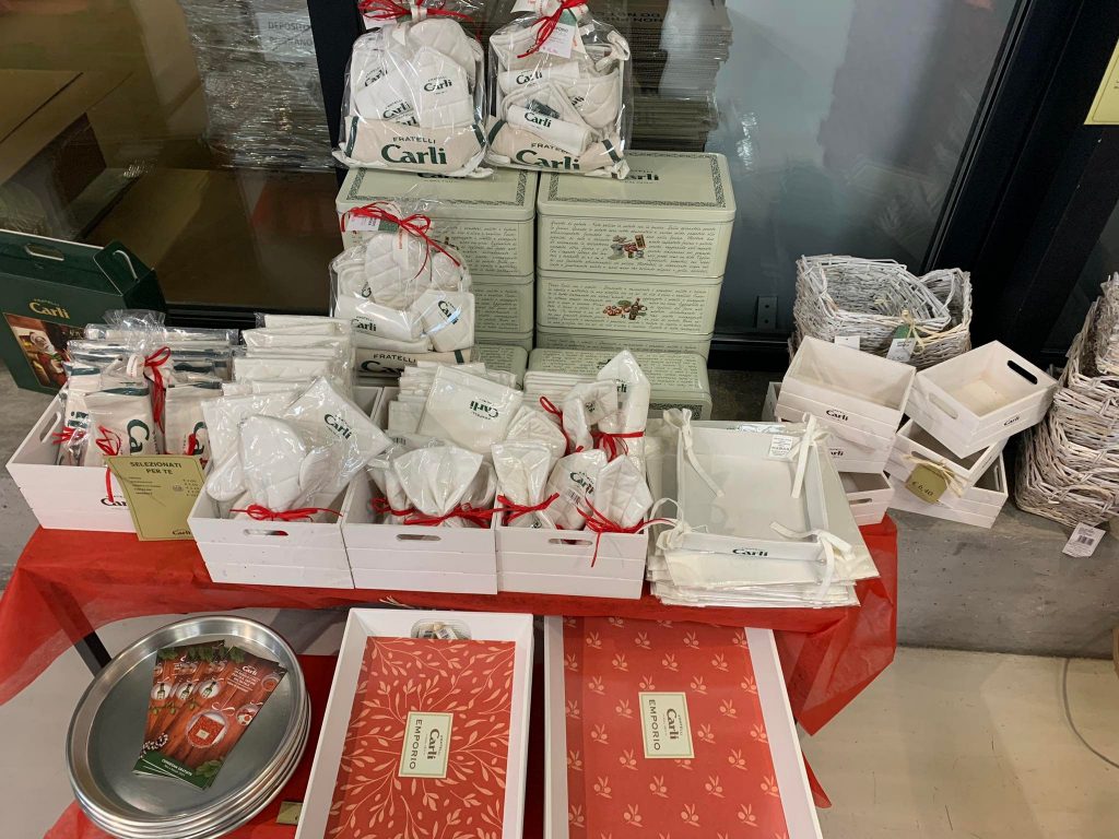 Per le confezioni pronte la consegna è gratuita e naturalmente è sempre possibile ordinare comodamente da casa, per telefono o con l’App Fratelli Carli. Ma una visita in Emporio aggiunge festa alla festa.