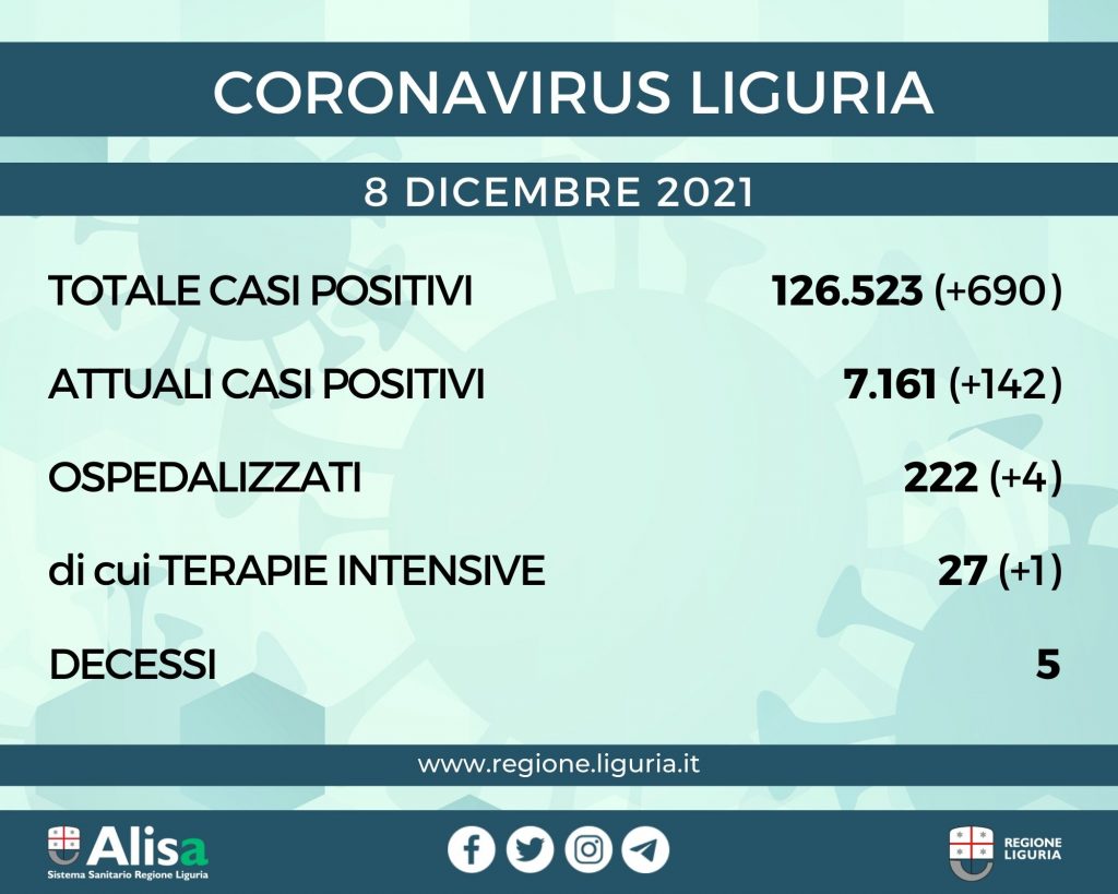 Covid, Liguria: il bollettino di mercoledì 8 dicembre