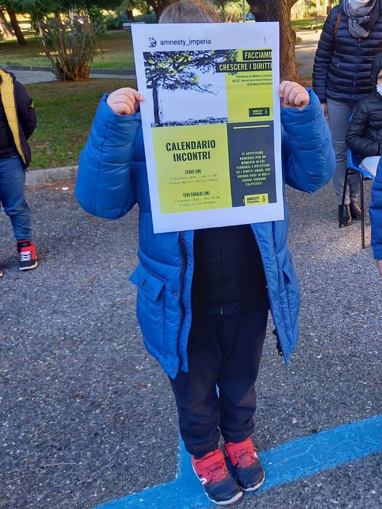 Il Comune di Cervo ha aderito all’iniziativa “Piantiamo un albero in occasione del 60° anniversario della fondazione di Amnesty International”, un momento dedicato alla riflessione sui diritti umani, calpestati oggi ancora in molte parti del mondo.