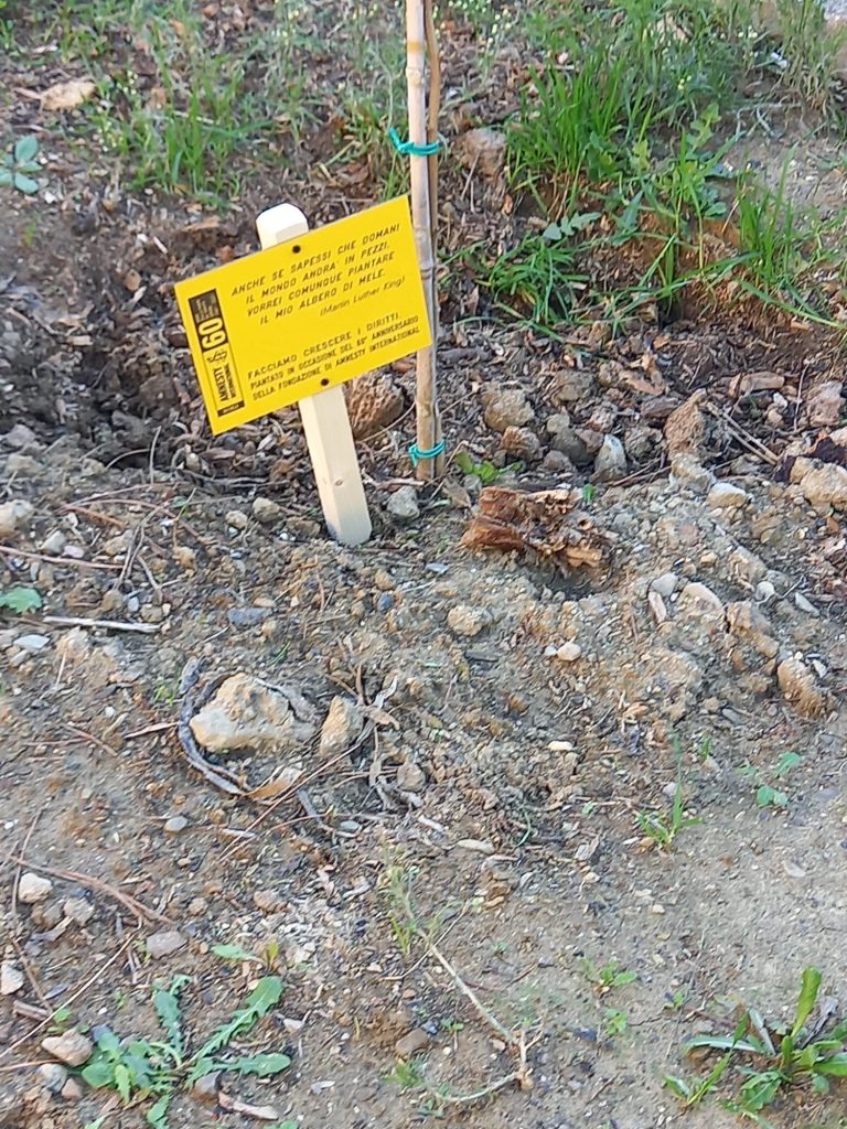 «In questo anno così importante per la nostra storia, l’albero simboleggia bene tutta la strada fatta e quella da fare e se il pianeta ha bisogno di tanti alberi per sopravvivere, il mondo ha bisogno di tante persone attive per diventare un posto migliore in cui vivere – scrive Amnesty a proposito dell’iniziativa – Da qui l’idea di piantare un albero in uno spazio pubblico per i 60 anni di Amnesty International per celebrare il nostro lavoro e soprattutto per ricordarci quanto ce ne sia ancora da fare per far crescere un’umanità attiva per i diritti tutti».