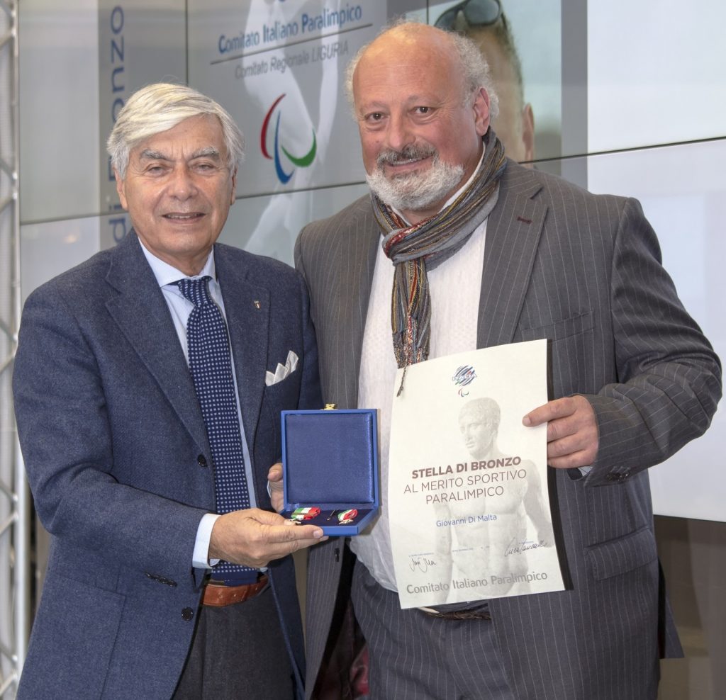 Giovanni (detto Giancarlo) Di Malta, 61 anni, storico presidente della squadra Liguria calcio non vedenti di Sanremo è stato premiato con la Stella di bronzo Dirigenti al Merito sportivo paralimpico.