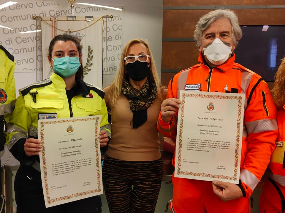 Oggi, sabato 18 dicembre, al termine del Consiglio Comunale, il Comune di Cervo ha conferito due encomi solenni per le attività svolte durante l’emergenza sanitaria da covid19 rispettivamente alla Croce d’oro e alla Protezione Civile di Cervo, che da anni operano sul territorio a servizio della comunità e della sicurezza.