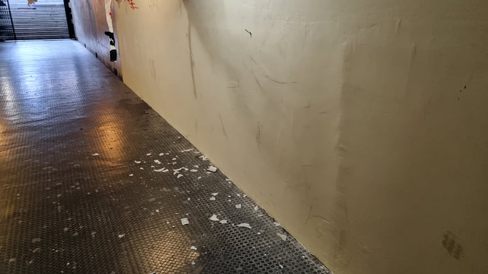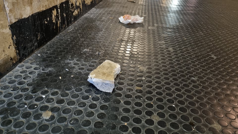Nella mattinata di oggi, sono state notate dai passati due plafoniere distrutte e altri danneggiamenti lungo il sottopasso, oltre a una serie di rifiuti gettati a terra.