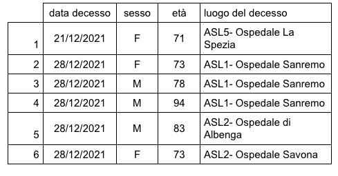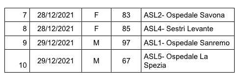 Si registrano 10 decessi sul territorio regionale, di cui 4 all’Ospedale Borea di Sanremo, Asl1 imperiese.