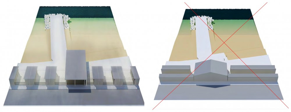 Quanto alla riqualificazione delle volumetrie esistenti, lo strumento urbanistico prevede, oltre ad una significativa revisione tipologica con grande attenzione alla qualità degli interventi, una particolare attenzione a che le volumetrie siano ricollocate in modo da non ostacolare i coni visivi verso il mare.