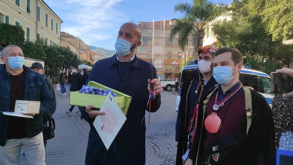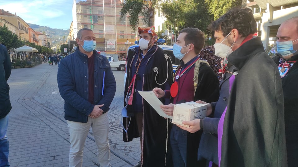 I goliardi consegnano doni agli amministratori comunali. Parla Cristian