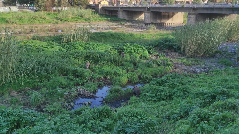 È ormai allarmante la presenza dei cinghiali nel greto del torrente Impero. Sono circa 3 o 4 gli esemplari, un’allegra famigliola, che in cerca di cibo si aggirano lungo l’argine del torrente, arrivando addirittura in strada. Sul posto è intervenuta anche la Polizia.