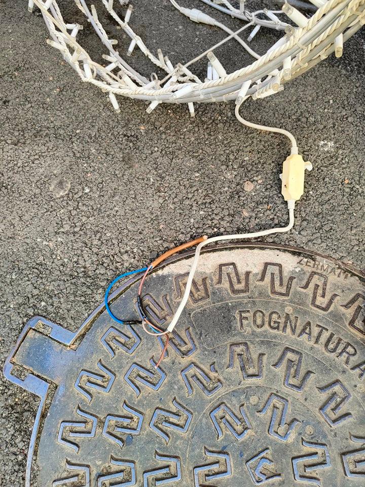 Fortunatamente nessuno è rimasto ferito e alcuni cittadini hanno provveduto a spostare la luminaria dalla strada, per evitare incidenti. Il cavo che la sorreggeva, anch’esso attorniato da mini luci led, è stato avvolto a appoggiato a una delle colonne dei portici.