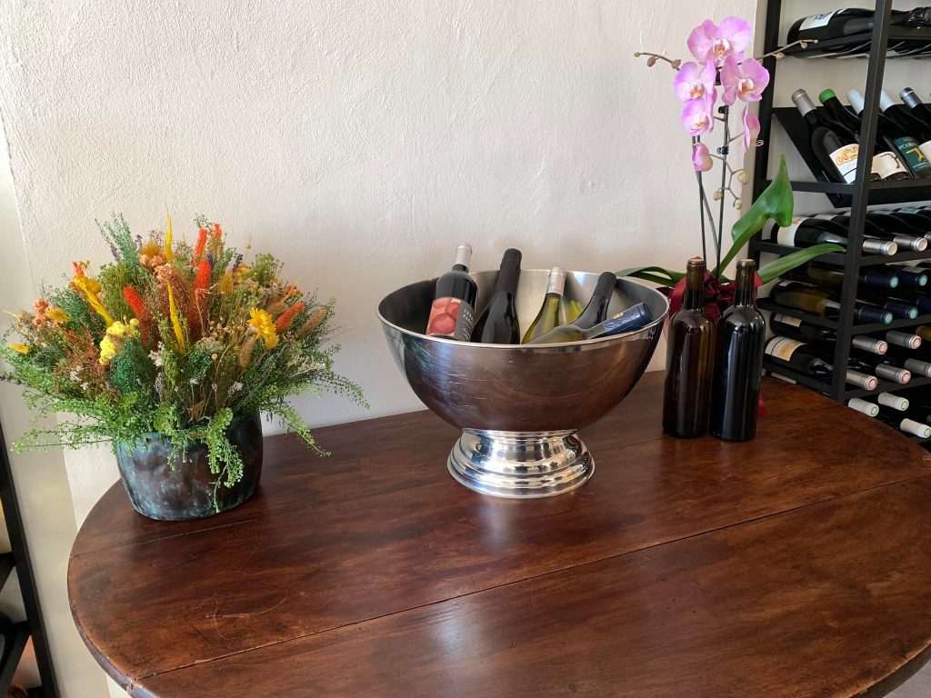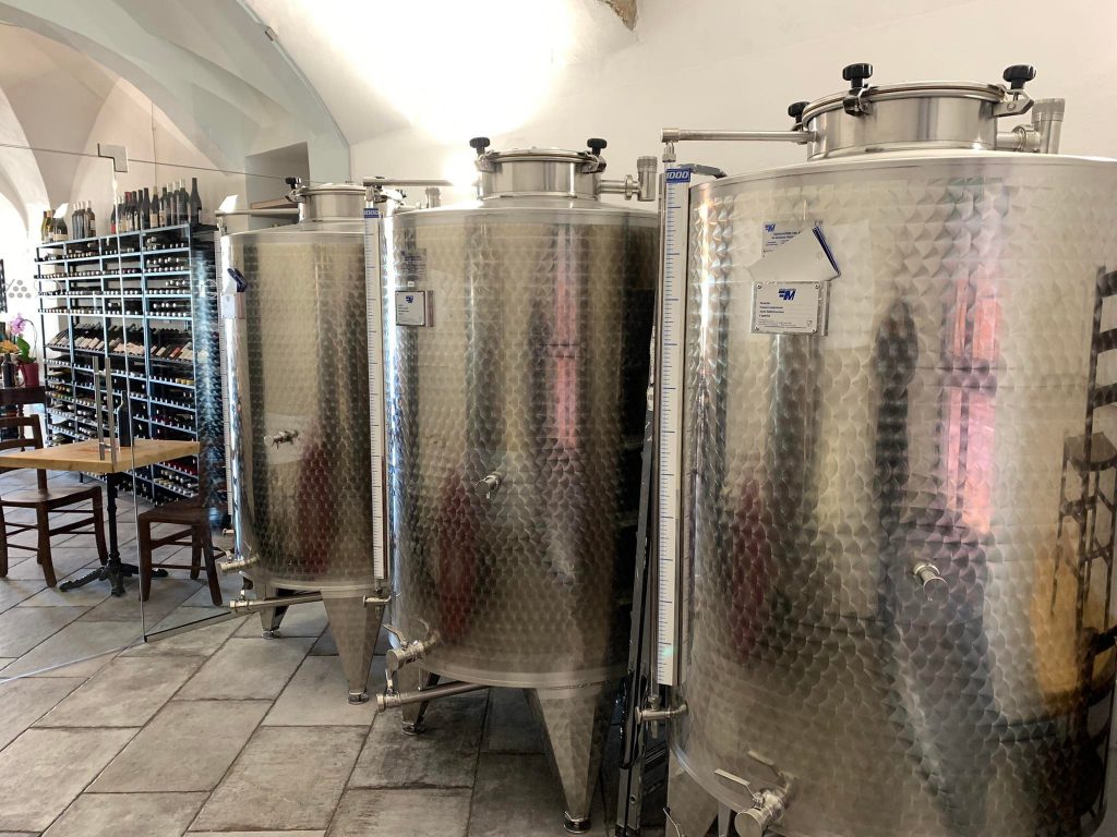 Dalla cantina attigua alla sala arriva anche il vino di produzione propria, proposto “alla fichelle” (un simpatico e unico sistema tutto da scoprire).