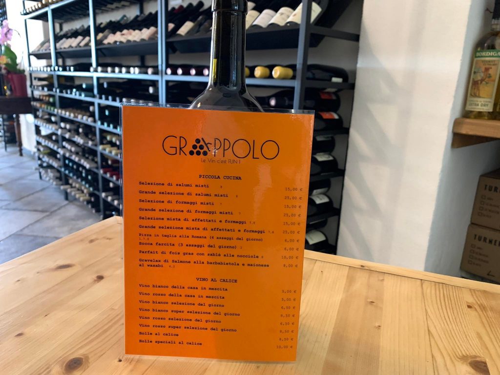 L’anima di “Grappolo” è il vino. E’ un’enoteca con mescita e consigli sul vino, dove potete trovare una vasta rassegna di vini francesi, bollicine comprese e ovviamente i migliori vini del Ponente Ligure. Ogni giorno una proposta diversa, da abbinare con formaggi, salumi, paté e altre prelibatezze per il palato.