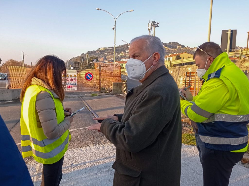 “Tutto questo importante lavoro permetterà alla nostra Città di trasformarsi, di crescere e, quindi, di dare lavoro ai più giovani”. Queste le parole del Sindaco Claudio Scajola dopo il sopralluogo odierno presso il cantiere della futura pista ciclabile che sorgerà tra Borgo Prino e Oneglia, lungo l’ex sedime ferroviario.