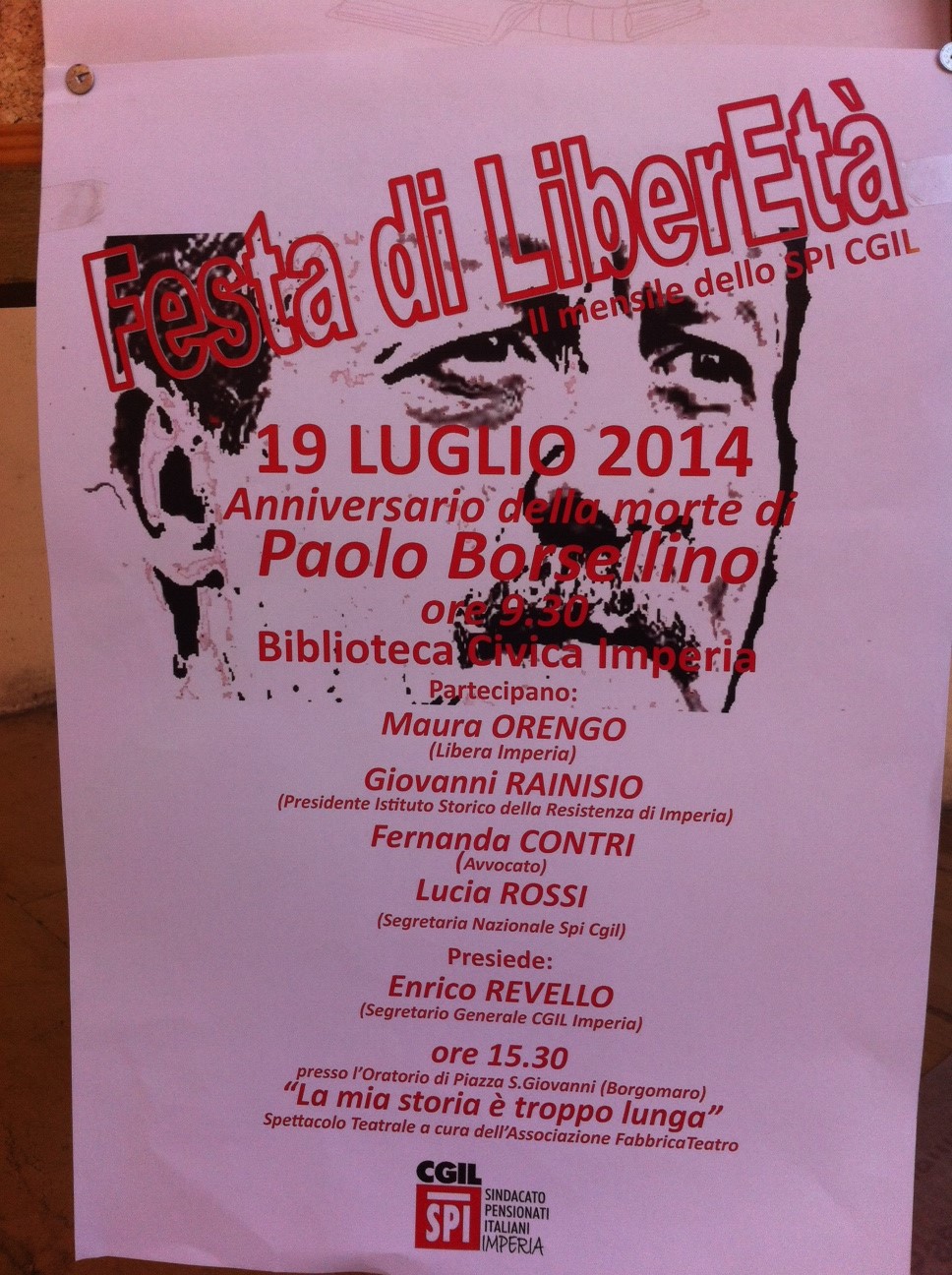 Imperia. “LiberEtà” il mensile delo SPI CGIL ha organizzato un incontro questa mattina presso la Biblioteca Civica di Imperia in collaborazione con “Libera” e i ragazzi del Consiglio Comunale dei Ragazzi. Uno dopo l’altro, in una serie di interventi molto intensi sono intervenuti, Maura Orengo (Libera Imperia), Giovanni Rainisio (Presidente Istituto Storico della Resistenza di Imperia), l’avvocato Fernanda Contri, Lucia Rossi (Segretaria Nazionale Spi Cgil).