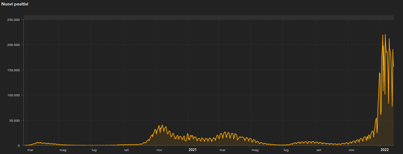 Sono 155.697 i nuovi casi di Coronavirus registrati su tutto il territorio nazionale, nell’arco delle ultime 24 ore (ieri erano 167.206). La Lombardia, con 25.098 casi, risulta essere la regione maggiormente colpita dalla pandemia.