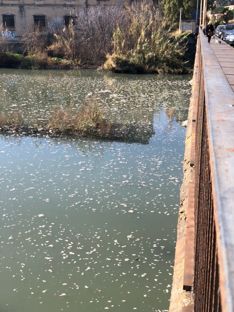 Non è passata inosservata la condizione delle acque del torrente Impero nella mattina di oggi. Sui principali social sono iniziate a circolare rapidamente le immagini del corso d’acqua, all’altezza del ponte del Lungomare Vespucci, ricoperto con quello che, con ogni probabilità, è ciò che resta dei residui fognari che, fino a poco prima, ristagnavano alla foce del torrente, dove da mesi continua lo sversamento di reflui dallo scarico di emergenza attivato dopo lo stop al depuratore per via dei lavori di riparazione del depuratore.