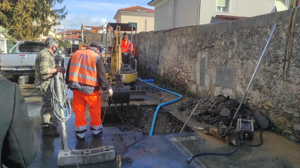 Ancora una rottura, l’ennesima, dell’acquedotto Roja. Questa volta il guasto ha interessato la condotta adduttrice, in corrispondenza del civico 16 di via Capocaccia, a Diano Marina.