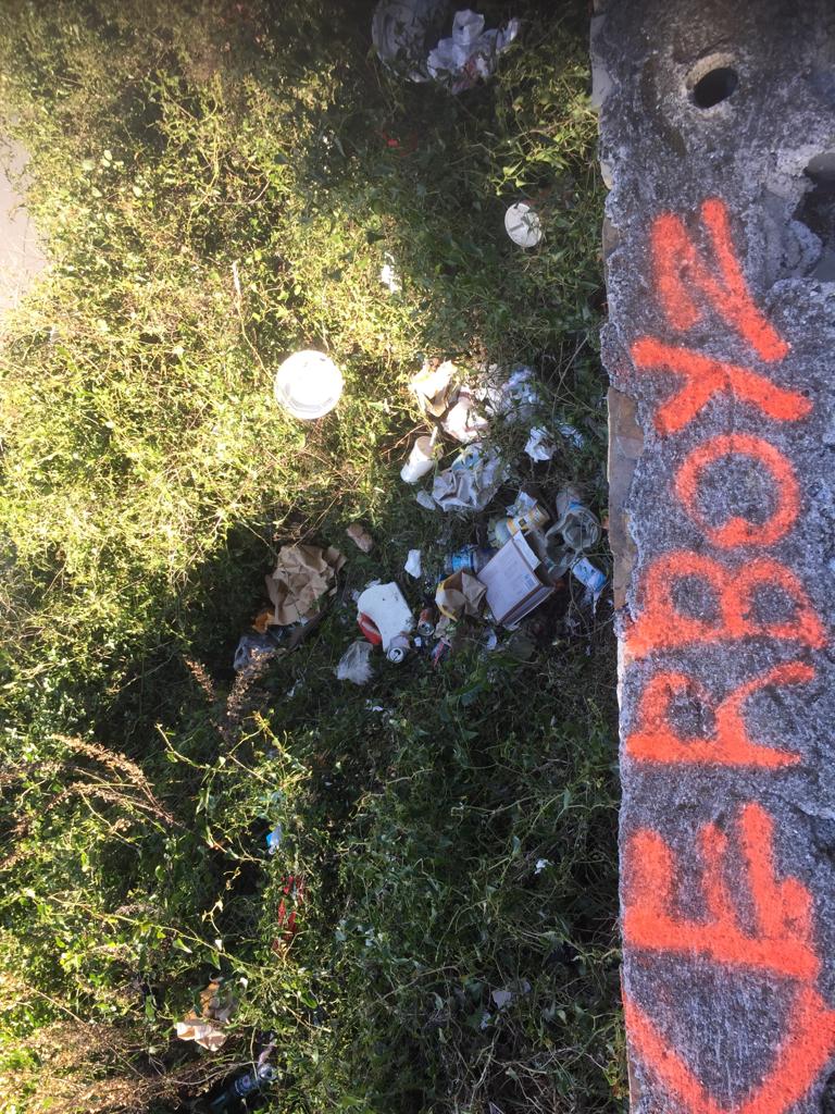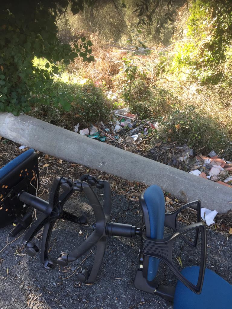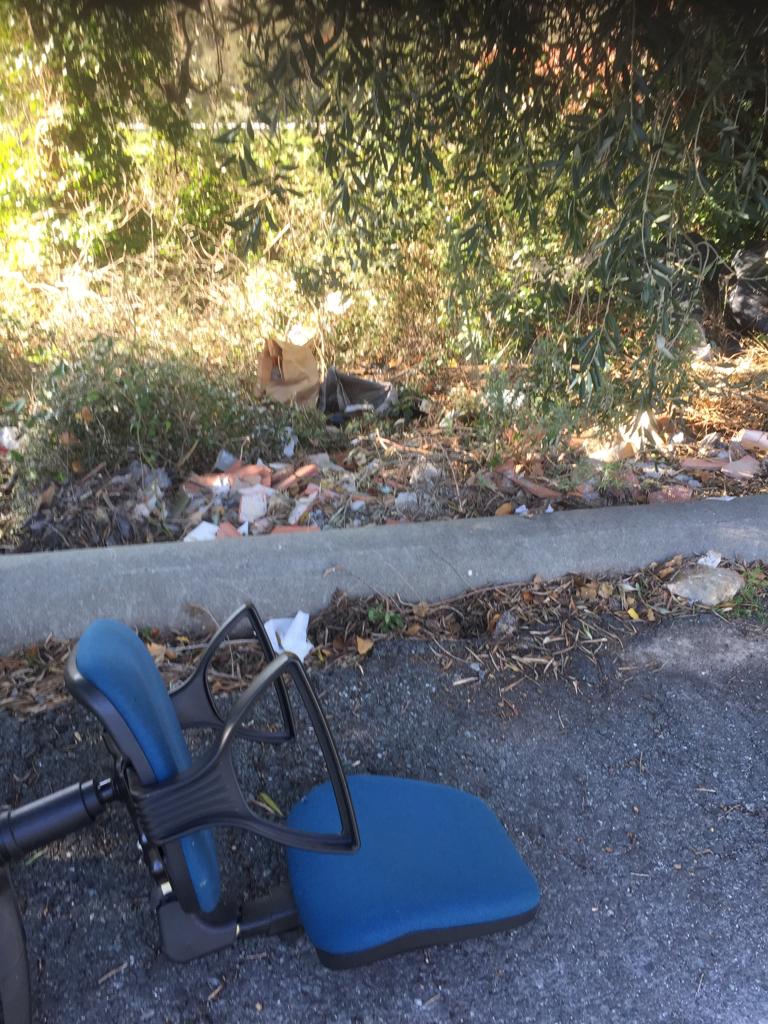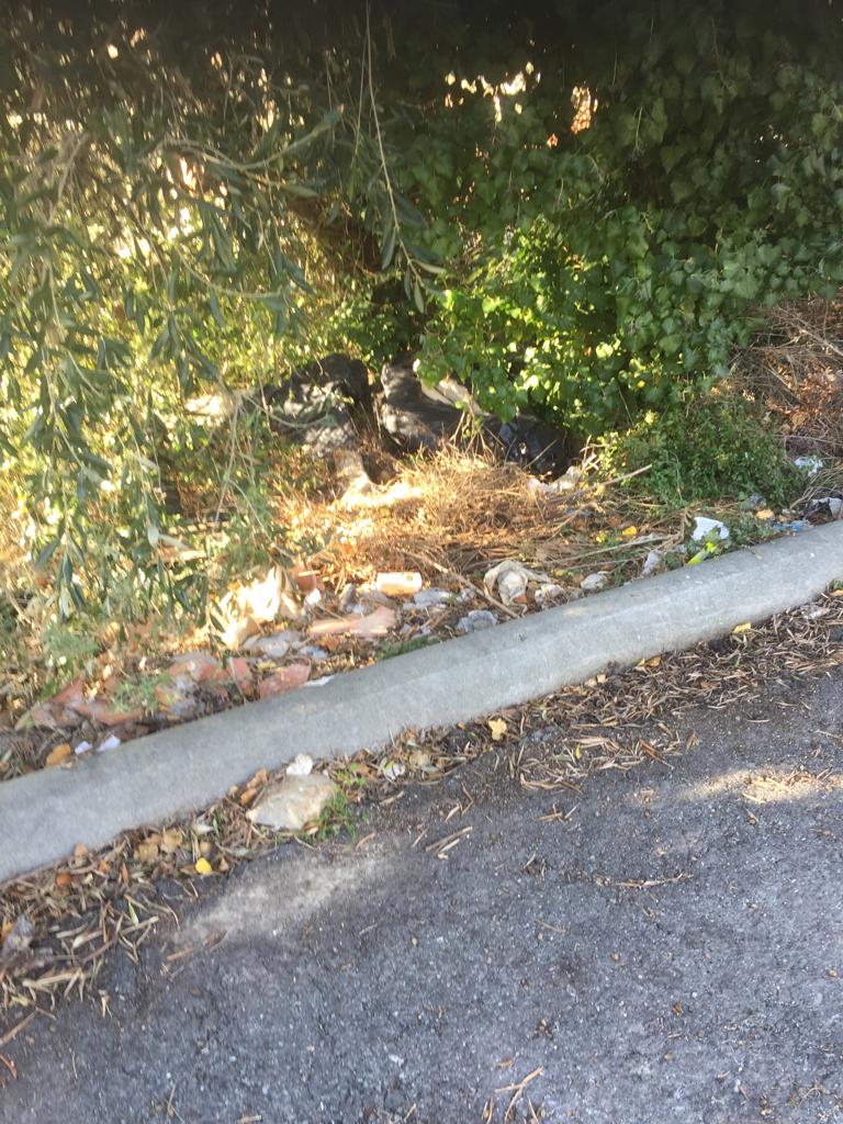 Come si può vedere dalle immagini, gettati nelle fasce a bordo strada sono presenti rifiuti di ogni genere. Cartacce, lattine, bottiglie di vetro e una quantità innumerevole di sacchetti di plastica. Tra la spazzatura sono persino presenti due vecchie sedia da ufficio.