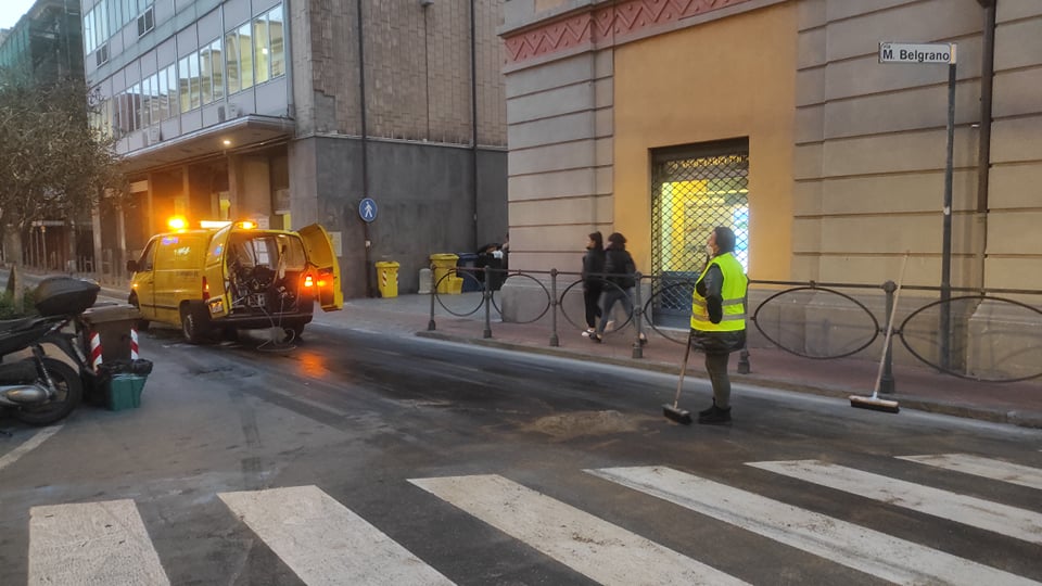 Per consentire le operazioni di pulizia e messa in sicurezza, è stato chiuso momentaneamente al traffico il primo tratto di via Belgrano.