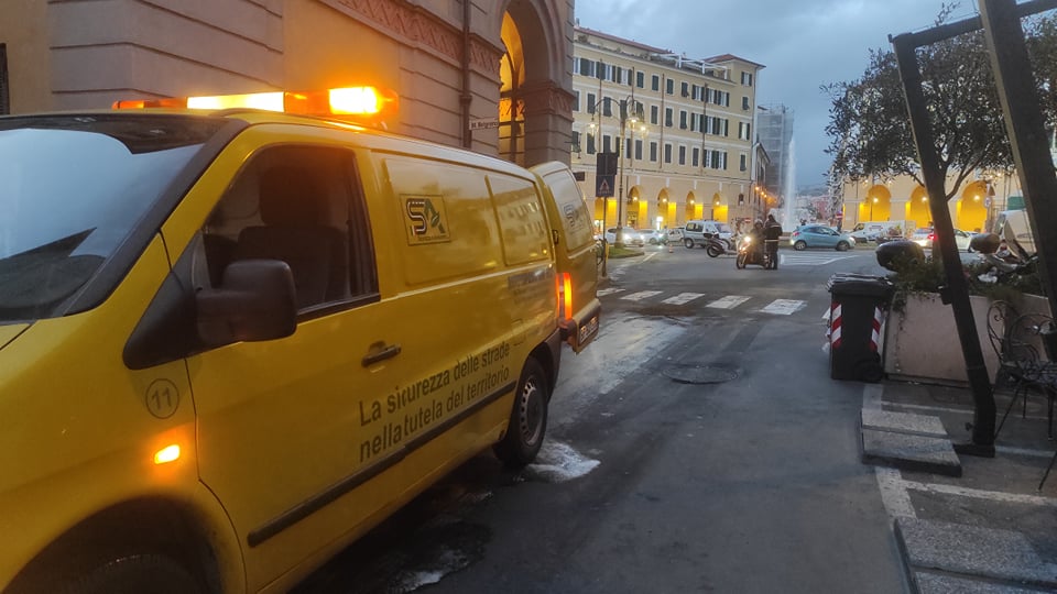 Imperia: auto perde gasolio in piazza Dante, chiusa via Belgrano. Sul posto la Polizia Municipale