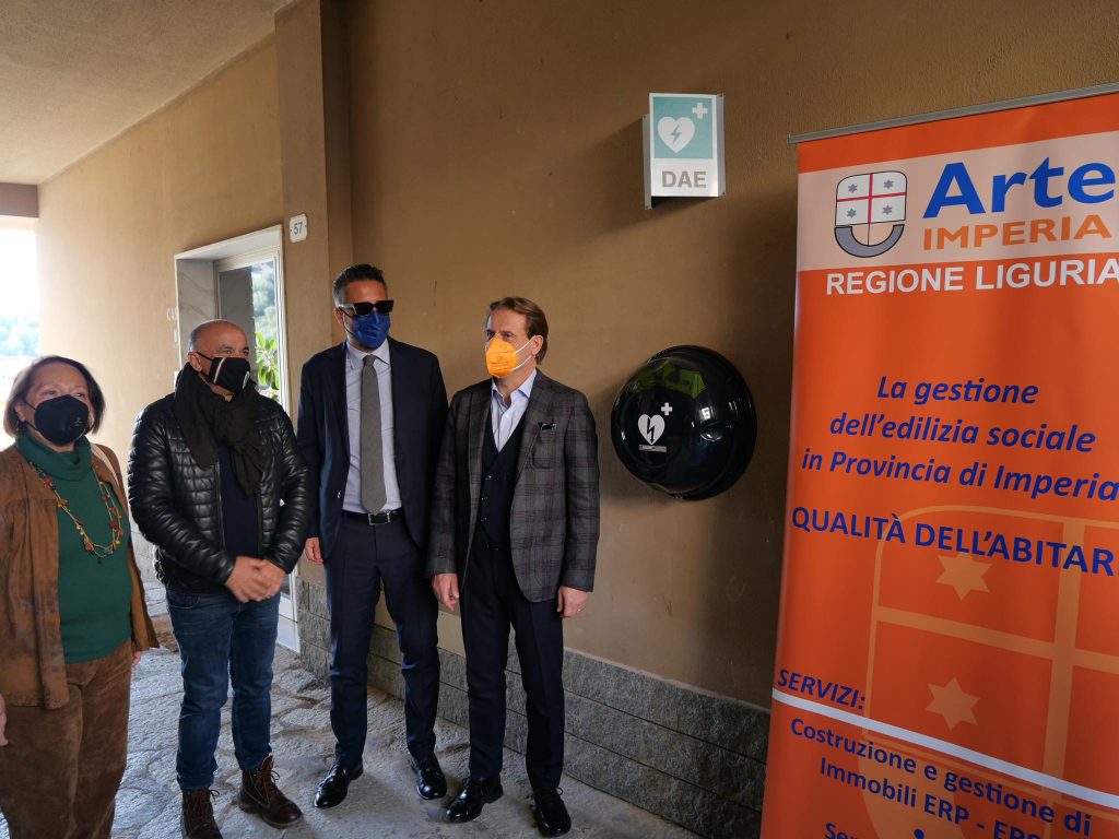 Negli alloggi Erp di via De Gasperi a Riva Ligure è stato poi inaugurato un ulteriore defibrillatore. Il sindaco Giorgio Giuffra ha dichiarato: “Importante che ci sia, significa che le istituzioni, regione Liguria, arte e Comune, stanno lavorando per essere più vicini alle persone che hanno fragilità e che abitano in questo quartiere.