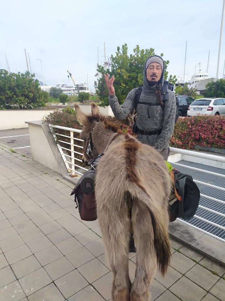 Conclude Bruno, prima di salutarci e riprendere il suo viaggio: “Noi proseguiamo il nostro cammino e cerchiamo di stare al meglio con tutti quelli che incontriamo. Alcuni sono felici e altri tristi, perché così è la vita. Il mio asino si chiama Alejkum, perché è figlio di Salam (il tradizionale saluto arabo “Salam alejkum” significa “che la pace sia con te” ndr), che era la mia asina, che ha camminato prima tanto con me. Ora tocca a lui fare il pellegrino“.